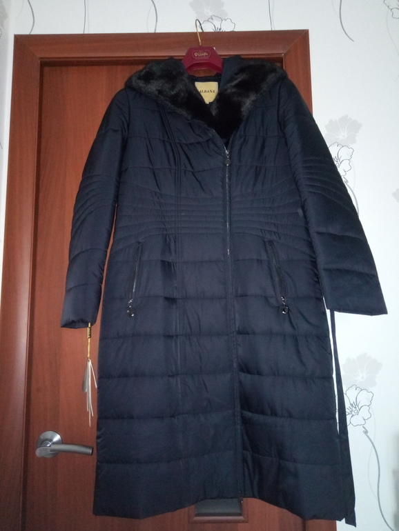 новое, с этикетками, размер 52. цвет темно-синий, капюшон, мех норка - съемный, утеплитель верблюжья шерсть. мерки :