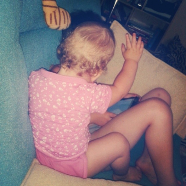 У кучерявой Улыбаши наконец-то вылез 5й зуб!! Полночи не спали...)) а теперь она консультирует брата по игре))) #доча #доча