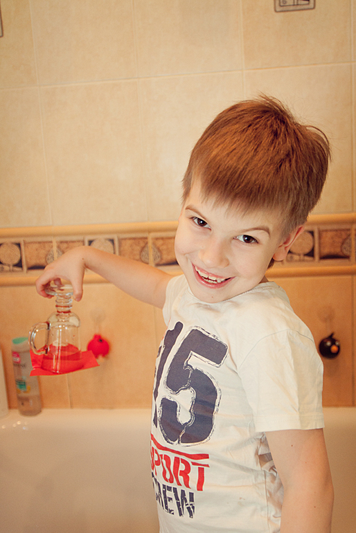 Там же приложена записка: «Всё нужное для опыта найдешь в ванной комнате в шкафу» Дима уже немножко растерялся, но интерес очевиден!!!