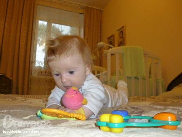 Сама перевернулась на животик!