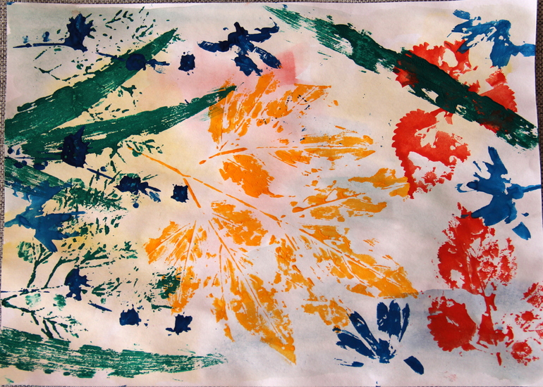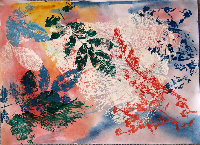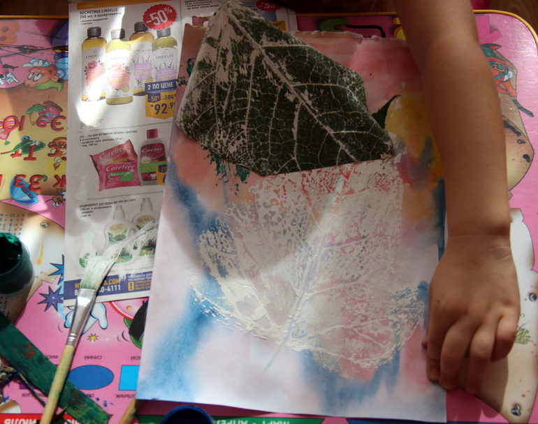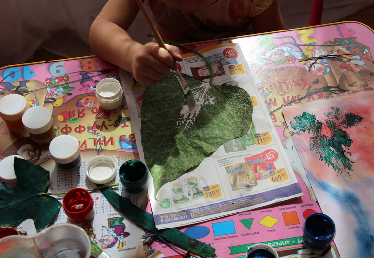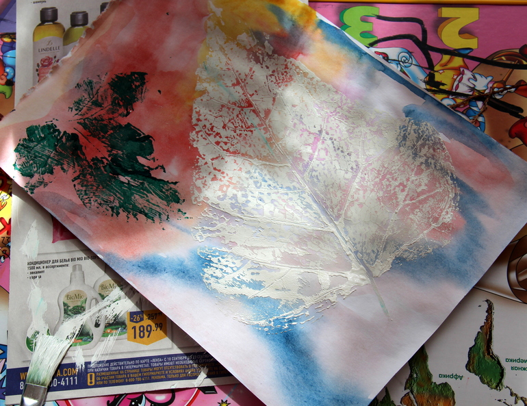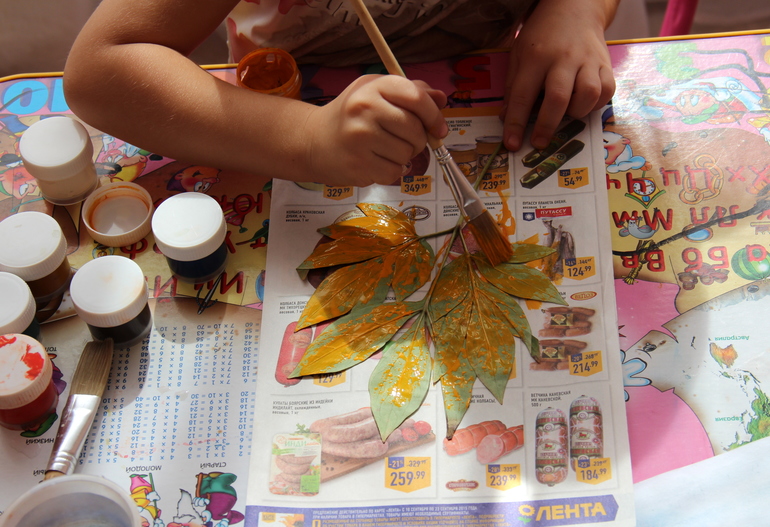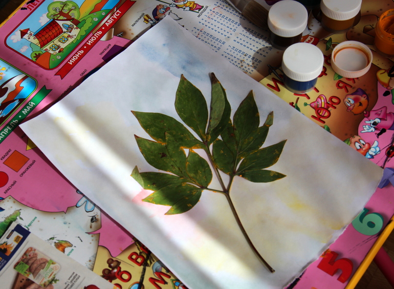 Хоть на календаре осень, но 19,09 в Краснодаре еще лето. И осенних листьев не сыскать. Пришлось собирать свежие листья, травы и цветочки. Перед рисованием, подсушили их под прессом по старинке - между листиками ненужного журнала )))