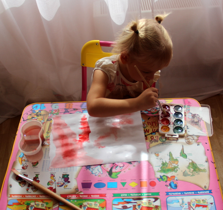 Диана очень любит рисовать, особенно красками. Обычно различное "кеси-меси".