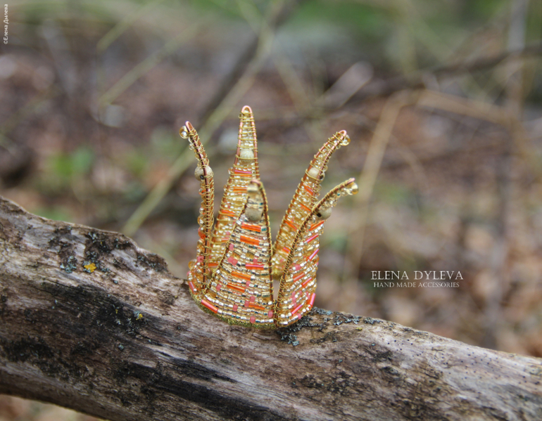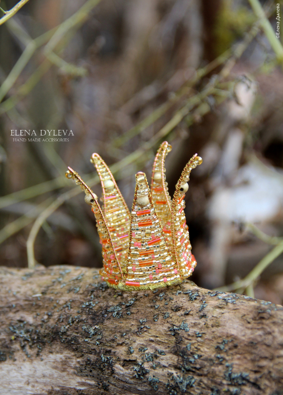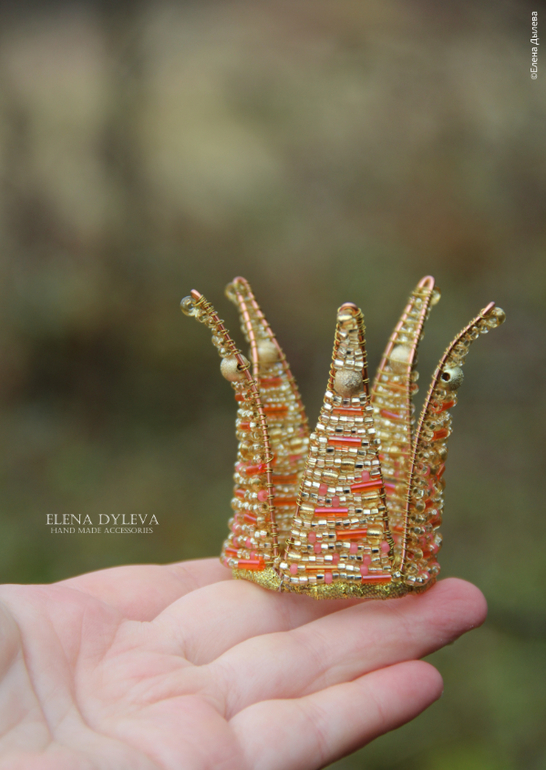 Корона имеет 5 звеньев. Выполнена из чешского бисера и стекляруса.