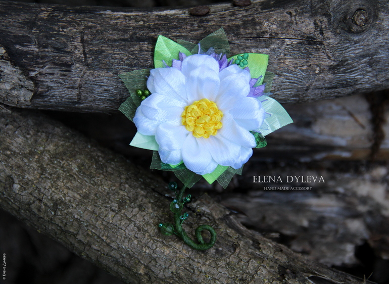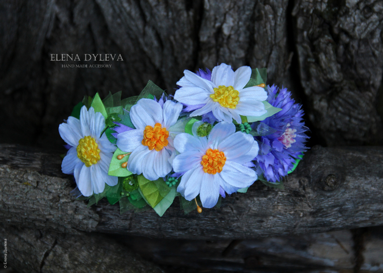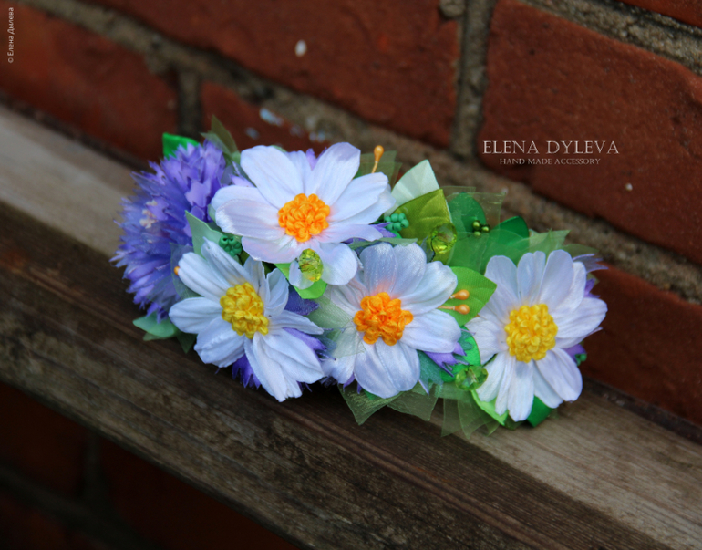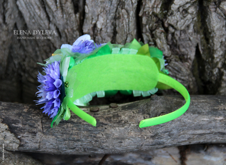 Летний ободок выполнен из атласной ленты. Дополнен бусинами и бисером.