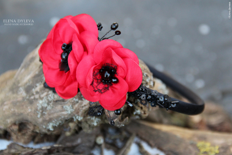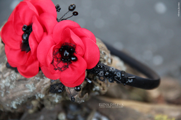 Ободок с красными цветами "Кармэн"