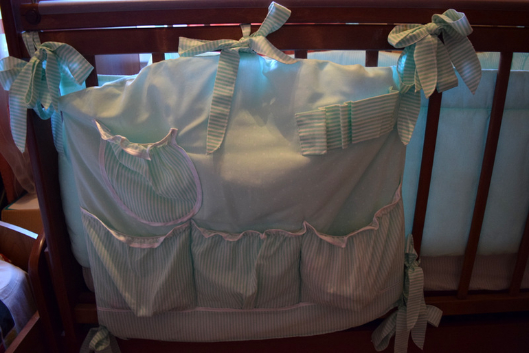 2. Набор в кроватку - бортик, балдахин и карман, нежно зеленого цвета.