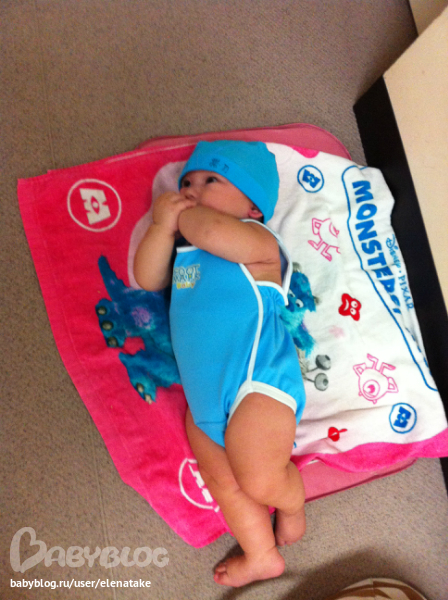 Сегодня мы в новой одежке, брала 80 см и боялась, что будет большой, а оказалось, что все как раз. Нравится то, что на ножках резиночки, не спадывает и ноги не путаются при ползании, и такой он приятный к тело. Правда, днем в нем еще жарко.