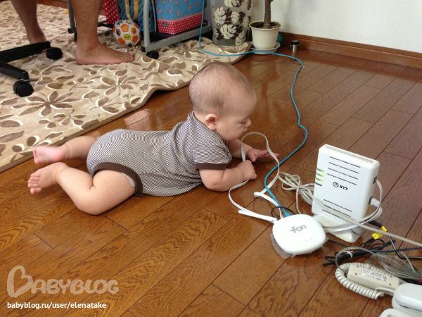 ой, как же летит время, вот только родился кажестя, а уже  полгода! прошло. Уже ползает моя крошечка, таки расстояния преодолевает на пузе, ну это так смешно - руками подтягивается и ногами отталкивается. Садится на бочок. Нужно все, что ..... не нужно, а что нужно и можно не так интересно. Поэтому приходится придумывать каждый день что-то новенькое, надеюсь хорошо забытое старое тоже сойдет за новое )))) Любит бумага, хватает ее везде, где видит. Любит машинки Лу, может ковырятьс с машинкой минут 10, колесики пальчиками трогать, причем чем меньше машинка, тем она интереснее. А вчера Рики (попугай) добегался перед Татеваки, он так его схватил рукой, да так крепко и не отпускает,  я перепугалась, давай пальцы разжимать, Рики истошно орет, перья летят.... ох все обошлось, облегченно вздыхаю.  Кушаем уже недельку, кушает можно сказать хорошо, только вот каша у нас размазанная по лицу, мы ее в ром запихиваем руками, вообщем, вокруг все в каше. во время еды занимаю ручки платочком или салфеткой, так тоже в рот ее, вместе с кашей. На этой недельке начнем кушать капустку и фрукты.