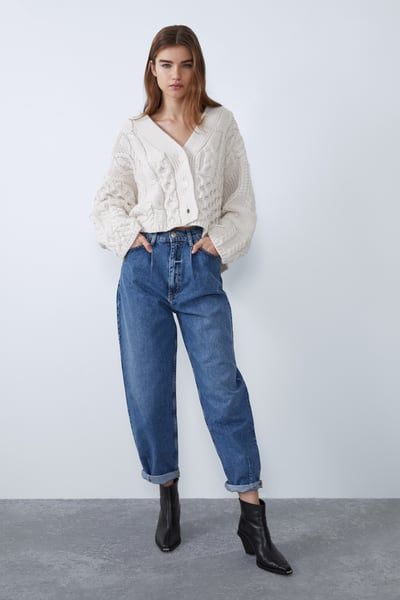 Джинсы Slouch создают дополнительный объем в области бедер учитывайте этот нюанс при составлении комплектов.