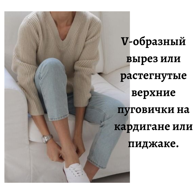 2. Отложной воротник, колье. На кардиган можно расстегнуть верхним пуговицы- это тоже создаст иллюзию длинны.