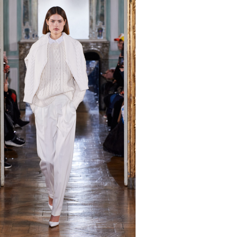 Благородный в молочном цвете монохром. И многослойность. Обратите внимание свитер повязан поверх свитера. Несколько дизайнеров использовали такой интересный стилистический прием .