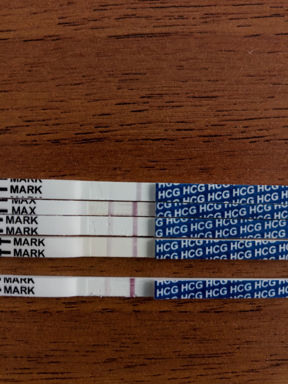 смотрю все тесты одной фирмы?у меня было 4 мес назад, два теста и слабые но явные полоски, через 4 дня м...и полоски пропали, врачь сказала что если ибыло что то вышло...