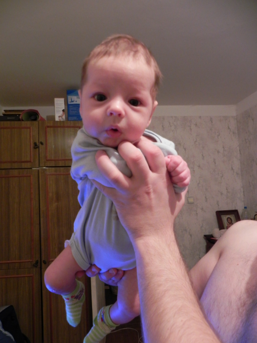 За этот месяц Лёва научился держать головку и на руках и лёжа, когда устаёт теперь аккуратно укладывает её, а не бросает, как раньше.