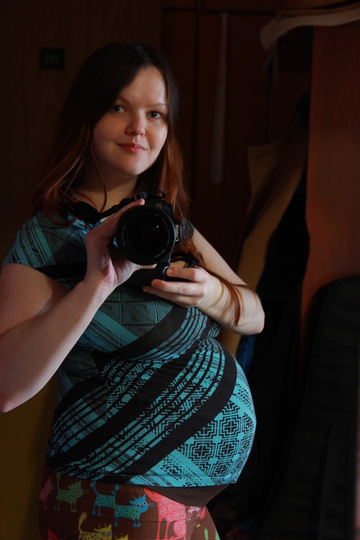 Я уже ни в чем себя не сдерживаю совсем: таскаю кошку, которая весит 6.3 кг, тянусь на верхние полки, прыгаю на фитболе... Видимо, в дочке уже зародился истинный упрямый характер овна. Будет сидеть до упора.