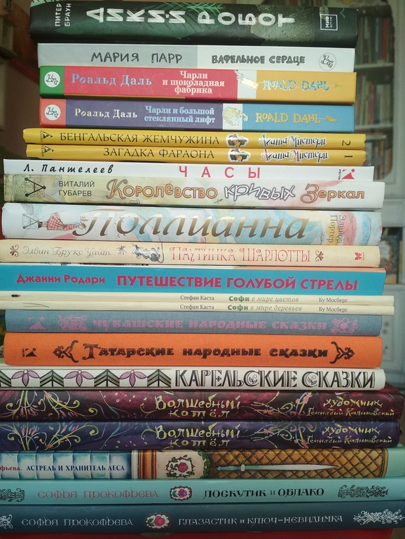 Когда выложила прочитанные книги за май в стопку, дочка сама удивилась такому объему. Видимо дожди не прошли для неё даром. :) В июне вряд ли такая же стопка будет. Так как читать уже некогда, целыми днями гуляет на улице.