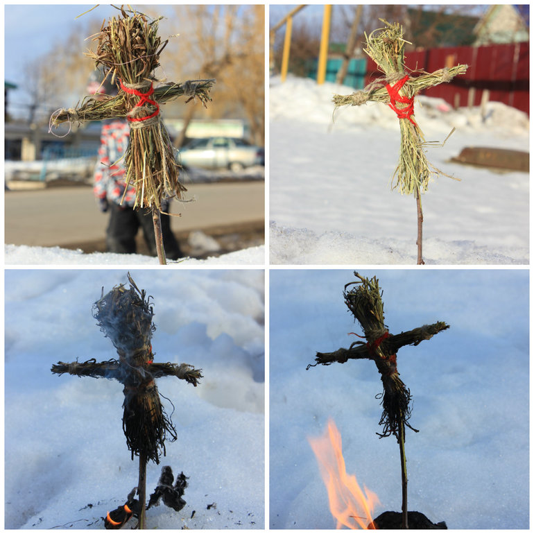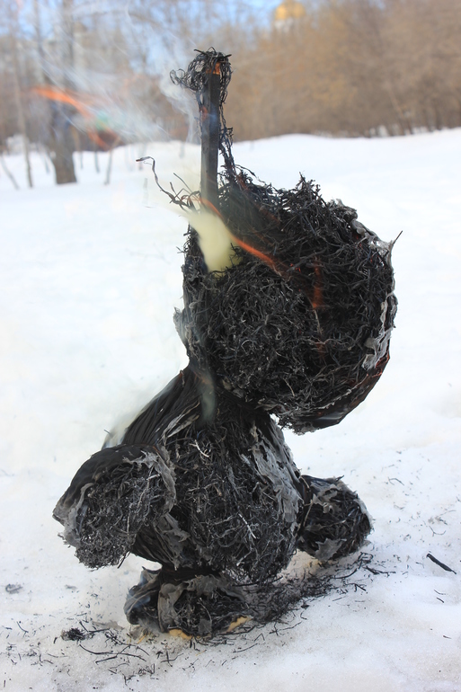 А и в этот день мы же сожгли наших маслениц. Кое как сожгли. Ни как не хотели они гореть. :)