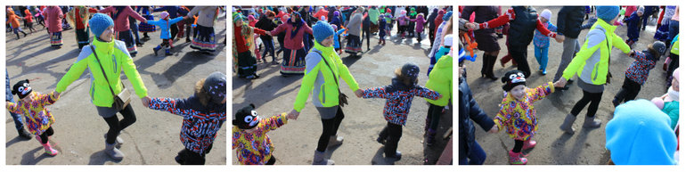 Потом водили хороводы. :)) Я стояла с Агатой и фотографировала. Зрелище конечно очень красивое, когда столько народу, почти вся площадь "завивают капустку".