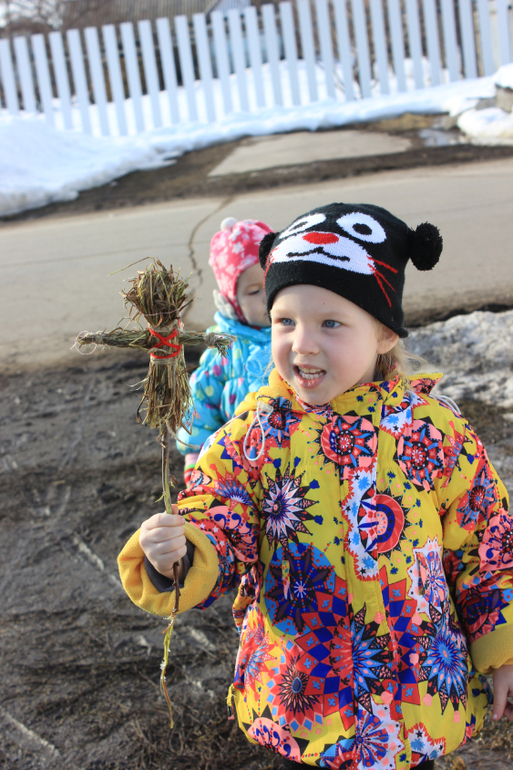Лера все ждет весну. Еще 8-го марта когда мы делали маленьких куколок, она хотела их сразу сжечь, что бы побыстрее весна наступила. :) И кстати ждет она ее так сильно, только потому что в мае должна приехать ее подружка. :)