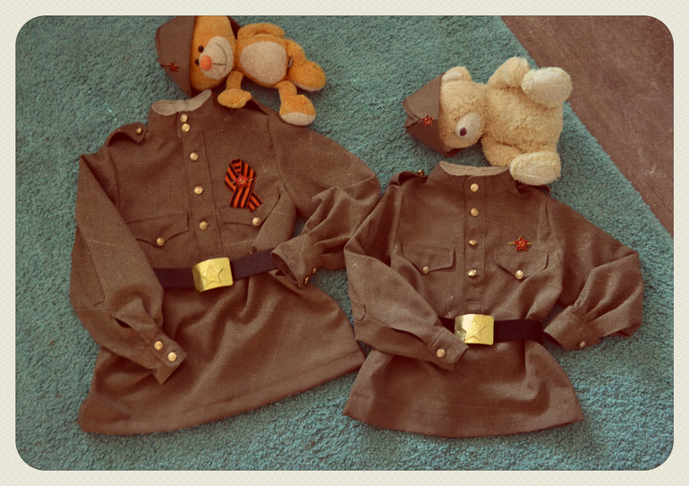 пошилась форма солдатов ВОВ (пилотка+гимнастёрка, без галифе, так как сапог нет((()