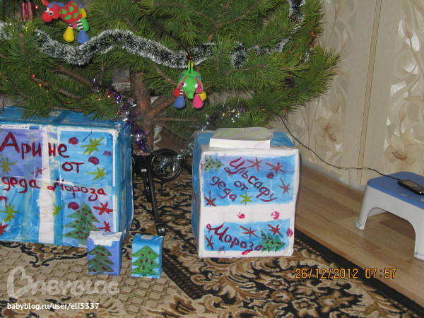 Ну вот вчера у сына был утренник.Вечером прибежал в поиске подарков,а их нет.Хотели дать 1 января ну решили раз утренник прошел и дед Мороз у него уже в гостях побывал значит время ПОДАРКОВ!!!