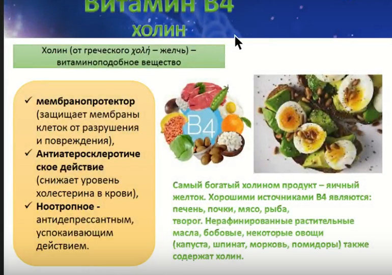Сейчас витамин В4 называют холин.