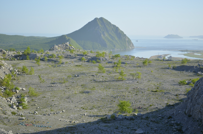 Вид с Брата на сопки Сестра и племянник (318 и 144 м. соответственно). Загадочные находкинские сопки, в форме египетских пирамид. Символ нашего города. В свое время гора Брат была намного выше (321 м.), но людская жадность не знает границ, часть горы взорвали и растащили на камни, испортив и климат города и внешний вид... По слухам, в их пещерах находятся остатки стоянок каменного века....