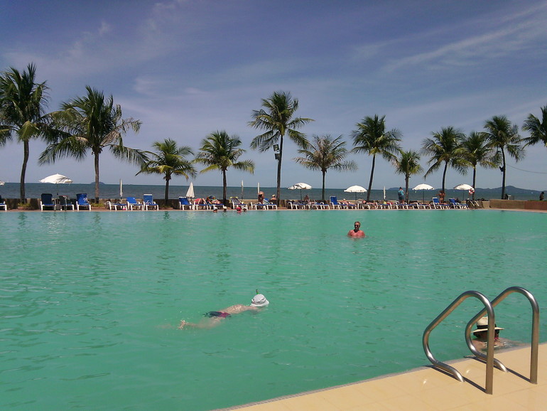отдыхТаиланд, Паттая. На улице +30, но ощущается как все 40, дождей пока не было, хотя бывает попеременная облачность, но чаще палящее солнце. Уже все обгорели даже в тени.
