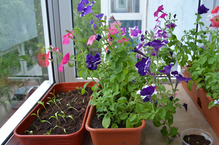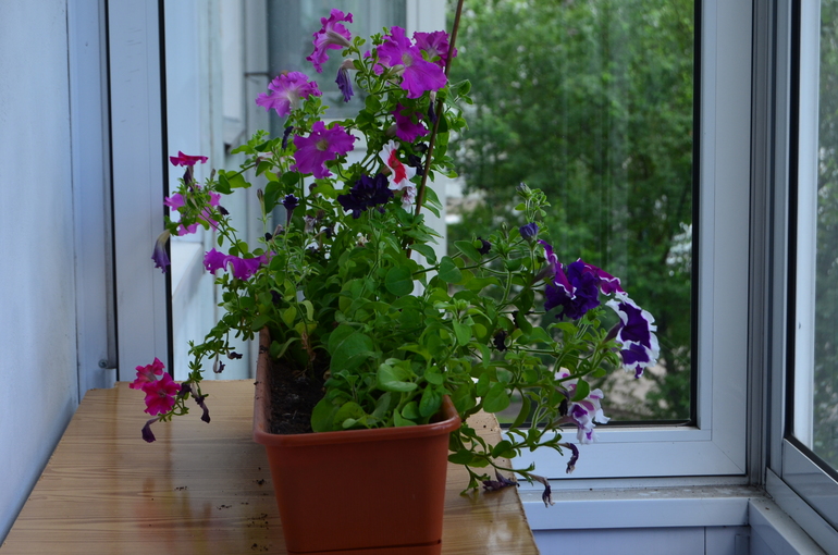 петуньки на балконе все в цвету