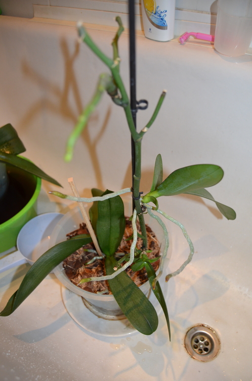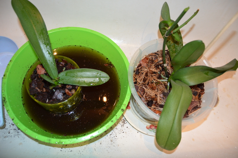 И рядом справа орхи в земле, экспериментирую, как они могут жить в обычной земле. Посадила двоих чахлых, думала, если загнуться, так вместе, год уже так сидят, листик новые пустили. Живучии оказались.