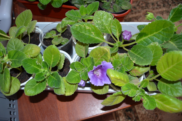 это глоксинии, но что-то они болеют вместе с фиалками. после прошлого неудачного удобрения с дрожжами, походу земля испортилась. надо в новую пересаживать все.