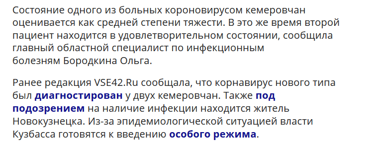 Ну, вот, 2 случая подтвержденных коронавирусом в Кузбассе и 1 под подозрением еще. И закрыли все и отменили массовые мероприятия. из кемерово.