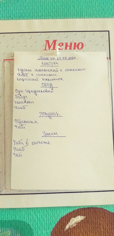 С едой тоже проблема, то ест, то не ест и я поняла, что дело в меню. Вот, давали сегодня и сын сегодня ничего не ел совсем.
