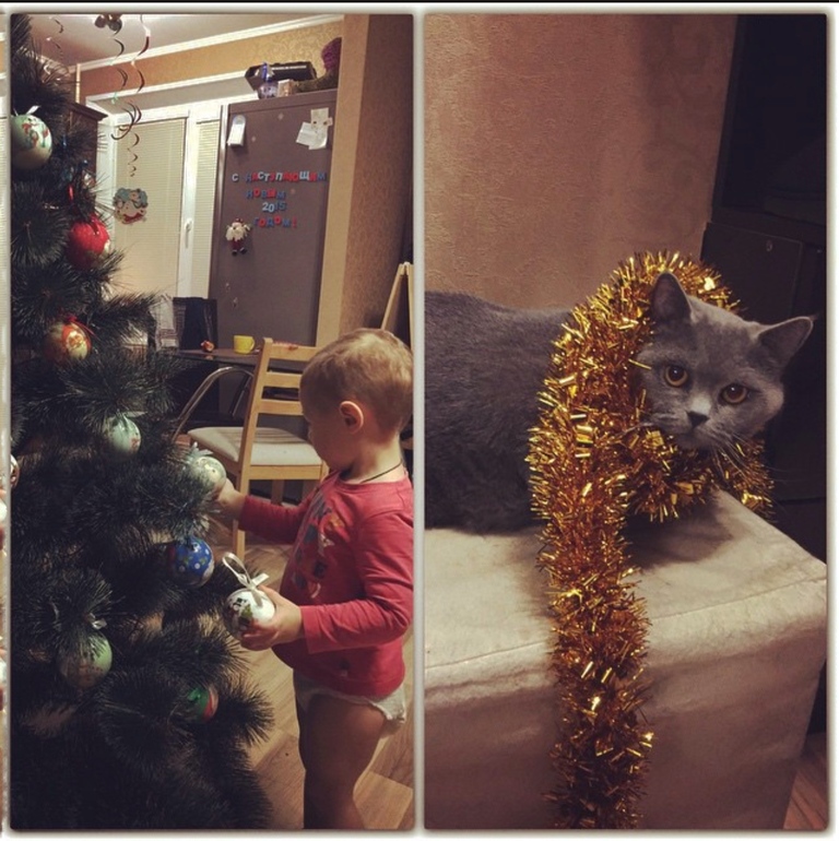 4. Пофотографировать Сережу с гирляндой у елочки