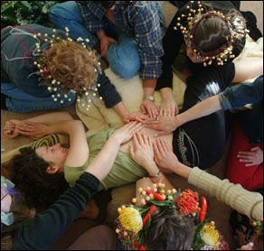 Беременная приглашает женщин, которым доверяет, которыми восхищается, тех, кто уже прошёл этот путь, тех, кто поможет ей набраться сил и проявит искреннее участие, женщин, которые любят и поддерживают её. Обстановка вокруг успокаивает, расслабляет и наполняет положительными эмоциями. Цветы, свечи, нежная музыка, драпировки из красивых тканей, мягкие текстуры, вещи, ароматы, красивые удобные подушки и коврики…