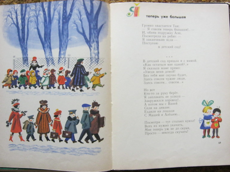 И вот и другая Маша - из книги Введенского тоже идет в детский сад, и мы можем прочитать главу про ее первый день в садике, про знакомства, про новую подружку - Наташу