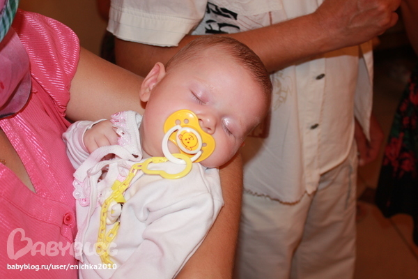 Ну вернемся к крестинам. Всё прошло идиально и только жара мешала наслаждаться этим днем.. после крестин поехали к моим родителям. Юляша вся в кругу внимания, на руках у бабушек и кумовьёв, в общем ребенок счастлив до невозможности...
