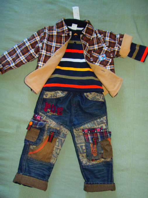 1. Рубашка в клеточку(новая с этикетками) на флисе и рукава тожеЗамеры: От подмышки рукав 25см; от плеча -30см; по спинке-39см. Джинсы на флисе(с отворотами)От пояса до матни перед-19см,пока-21см; Внешний шов 51.5см;внутрен-33,5см.Поло полосатая.От плеча рукав-30см, от подмышки 25см. по спинке- 35см. За все 700р.