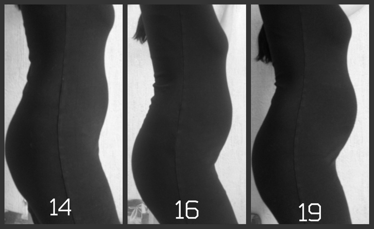 первый это сегодня 18+6, нижний-тогда с дочкой 19+3 (живот сразу скажу становится ровным через неск мину, он не всегда такой))