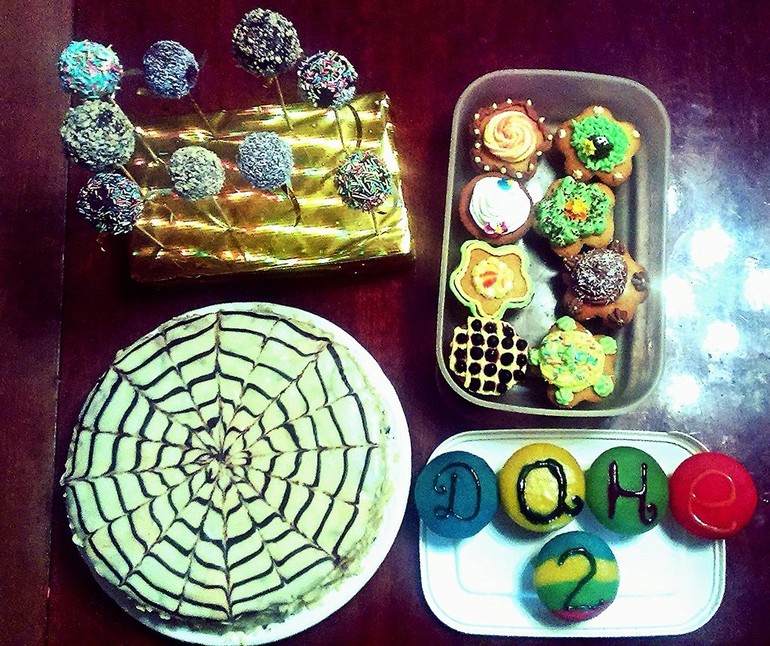 , что задумала - сделала! Торт "Эстерхази", апельсиновые капкейки с лаймовым курдом и малиновым топпингом, кейкпопсы. Торт этот делала в первый раз. Стараюсь перед мероприятием потренироваться, сделать хотя бы один раз, но решила рискнуть. Паутинка чуть кривовата, а сам торт удался. Капы и попсы делала уже в третий раз (здесь потренироваться было время). Гости были в приятном шоке))) Жаль только что сыну такое еще нельзя