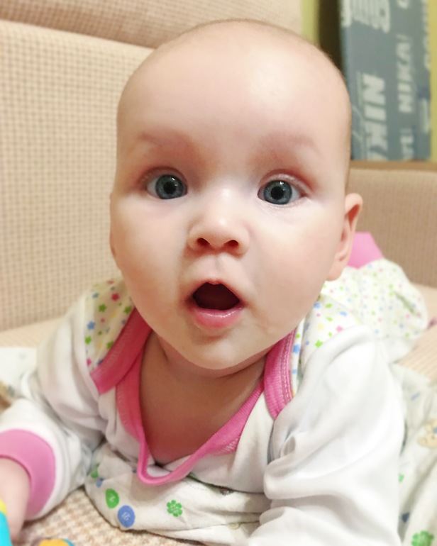 Крутится на животе, встаёт на коленочки, но не на ручки, пока также на предплечьях стоит. Большую часть на полу «живет». Ждём ещё масс...