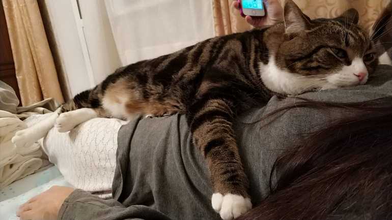 Моя кошка тоже приходит, ложится и мурчит😊 Хоть она пока еще и котенок, но мурчит как трактор... Но мне кажется малышу прикольно..Мне кажется должно успокаивать.. Мне бы нравилось😂 А так пока обратной связи от малыша не получаю о том, что ему не ноавится😂😂😂
