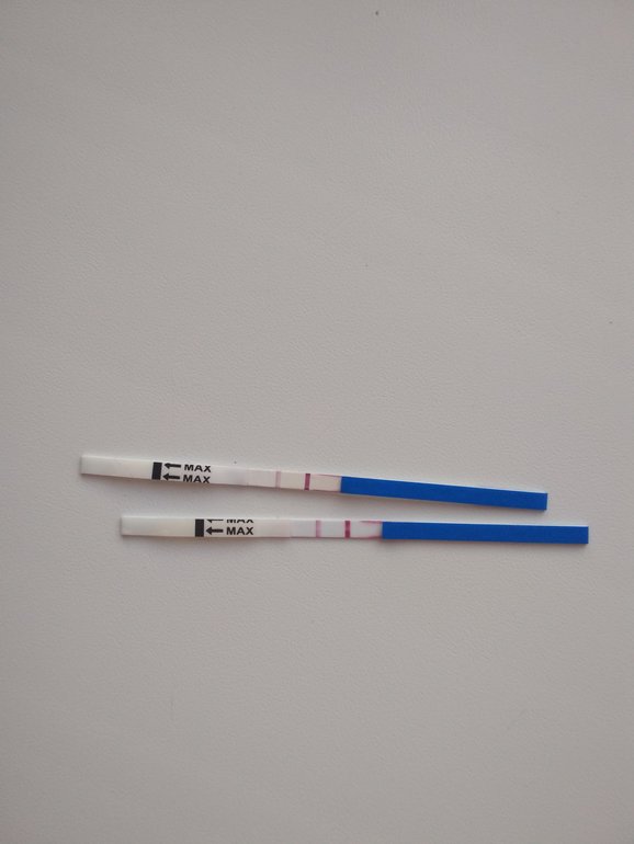Как я посчитала от первого дня последних месячных сейчас 5 недель. ПМ была 12.02.19 цикл регулярный 32 дня. В первый день задержки сделала тест была одна полоска. Из признаков была сначала простуда без температуры и грудь ужасно болит и такое ощущение покалывание внизу живота были как будто вот вот месяки придут, но сегодня уже 10 дней и ничего нет, вот сделала сегодня один утром второй минут 40 назад и вот такие полосочки. Надеюсь очень что это беременность, к врачу уже записана на 28.03