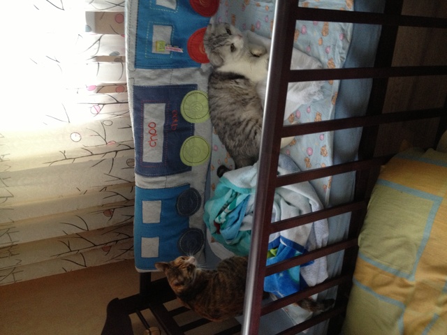 у нас дома 3 кота!еще беременной начала отучать их от нашей комнаты,заходили они туда только в моем присутствии,чтобы я могла углядеть чтобы не залезли куда!особенно сложно было отучить спать на моей кровати,я уже и не рада была что понабрала столько котов!по задницам давать,так они не понимают!и я нашла способ)))только на кровать запрыгнет я пульвиризатором в морду брызну,убегают сразу)))так я их отучила от кровати,детской люльки,коляски,кресел!сейчас лежат только на полу и подоконнике.Их уже даже брызгать не надо,только пульвиризатор покажу,сразу щурятся и убегают!понимают заразы)))