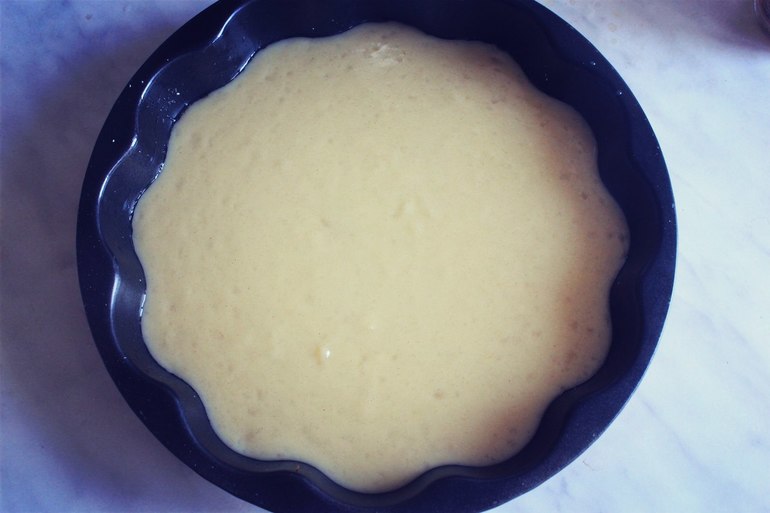 6. Остудить и поставить блюдо в морозилку примерно на 3 часа (крем должен полностью застыть, чтобы его было удобно резать).
