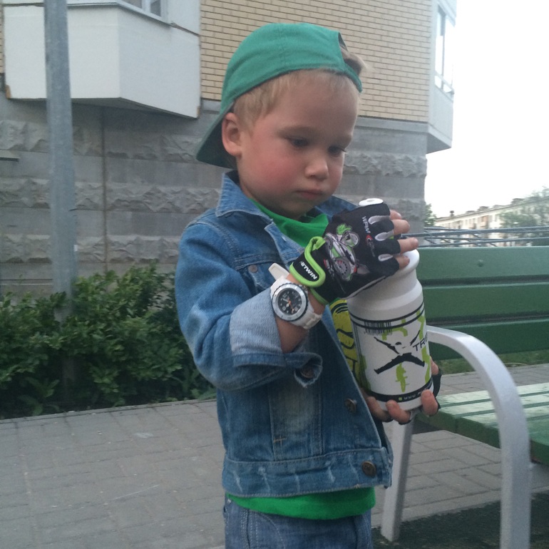 Такой загорелый! Сразу видно что на улице много гуляет)) разве не похож на наше детство Маш? Только обсуждали недавно) в саду все так же у нас было,а после сада велик и бег до темноты! И про комп даже не вспомнит! Ps: чем мажете колени и синяки? У нас тоже все ноги синие((( но обувь пока держится! Особенно по вкусу кеды ваши Ральф,третий день не могу уговорить идти гулять в чем-то ещё)))) и высокий Егор какой,я думала после трёх дети медленней растут))))