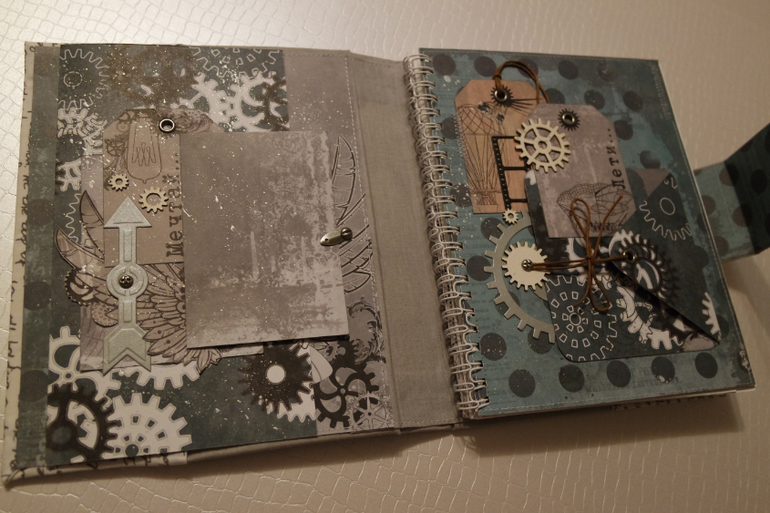 Так же есть кармашки для хранения вырезок и записок.Закрывается на резинку с пуговицей.