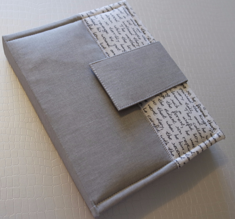 Тканевая обложка из хлопка.Задняя часть обложки обтянута в кожзам золотого цвета для практичности.