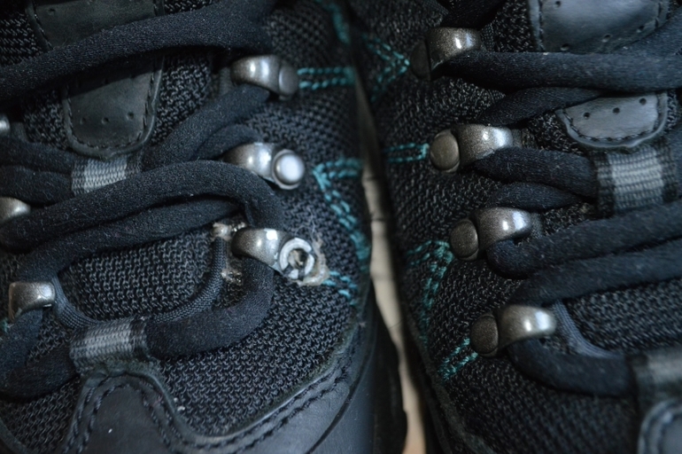Нюансы - на правом ботинке на боковой кожанной вставке пару царапин (при носке не заметно) и на нижней скобе для шнурков отвалилась заглушка, на функциональность никак не влияет (на фото ниже видно)
