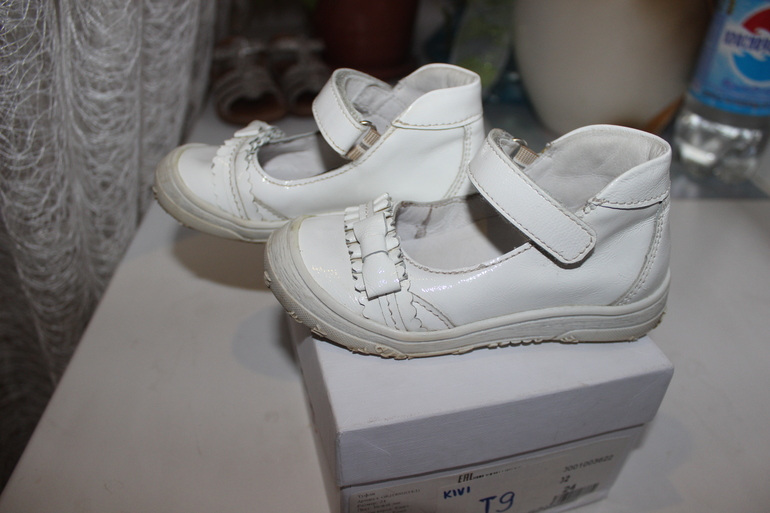 6. Туфельки Bunt лаковая белая кожа, мысы неубивайки,, 24 размер, по стельке 15,5 см (на ножку 15 см), в реале намного лучше туфельки. Из нюансов-маленькие точки от смолы тополя на стельке внутри туфель. Царапин, заломов и прочего нет -1000 руб
