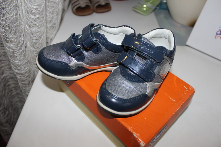 7. Кроссовки Чикко, темно-синяя лаковая кожа с серебром, внутри белая кожа, 24 размер, по стельке 15,5 см, из нюансов-на одном кроссовке маленькая коцка-1000 руб ПРОДАНЫ